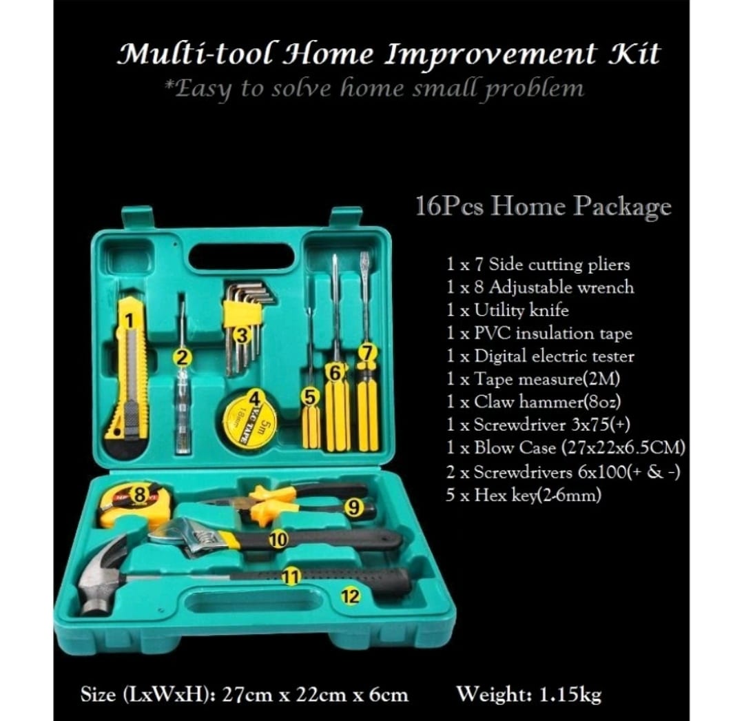16PCS Mechanic Essentials – Durable Tools for Garage & Household Repairs Assorted/random set.