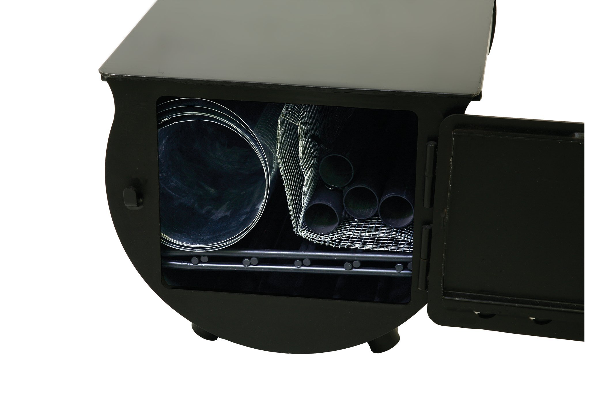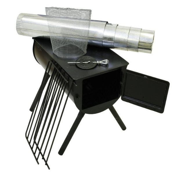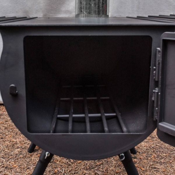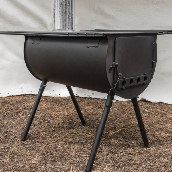 Heavy-Duty Cylindrical Tent Stove (with Damper and Side Shelves)